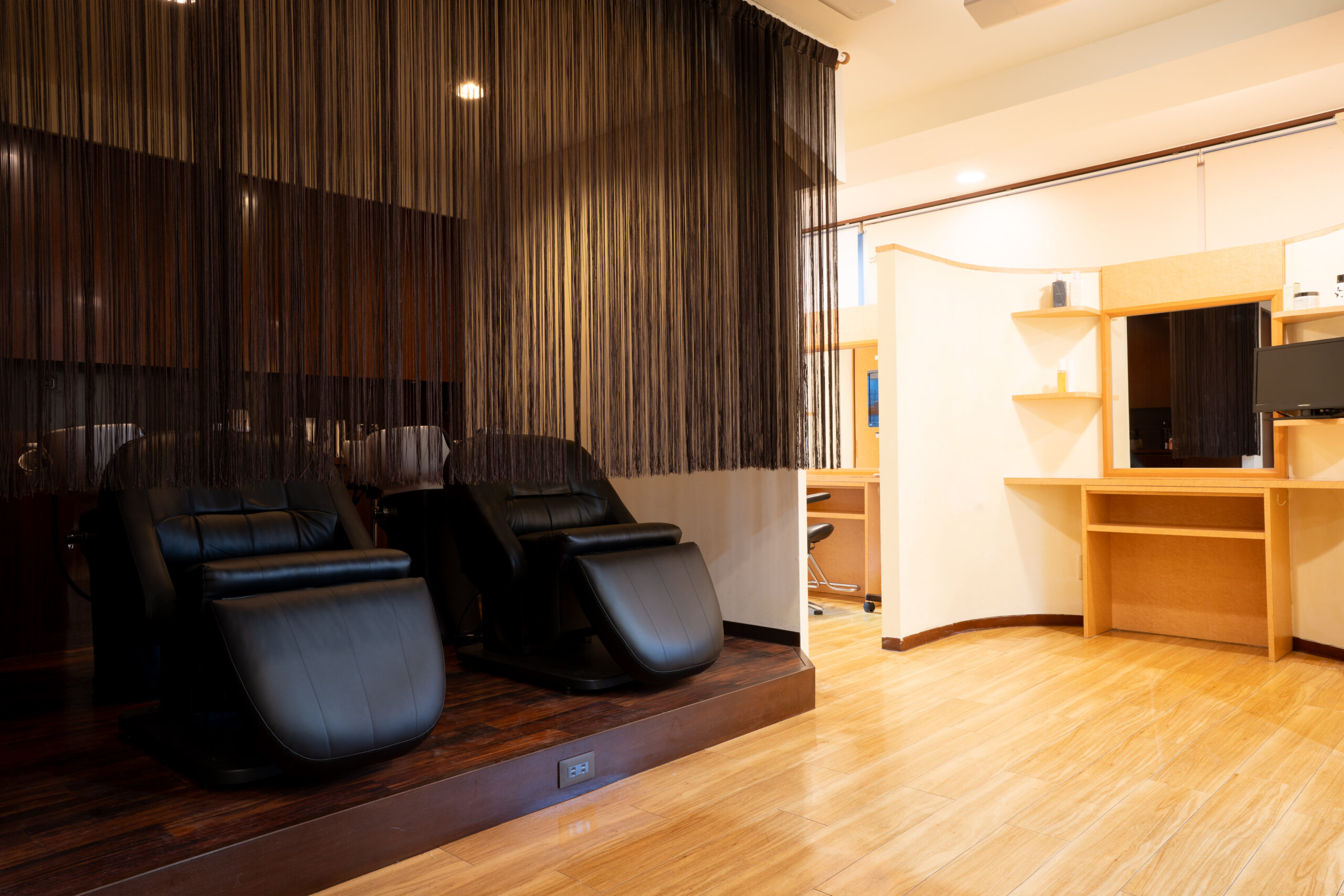 お席は半個室風 シャンプーはゆったりソファータイプ